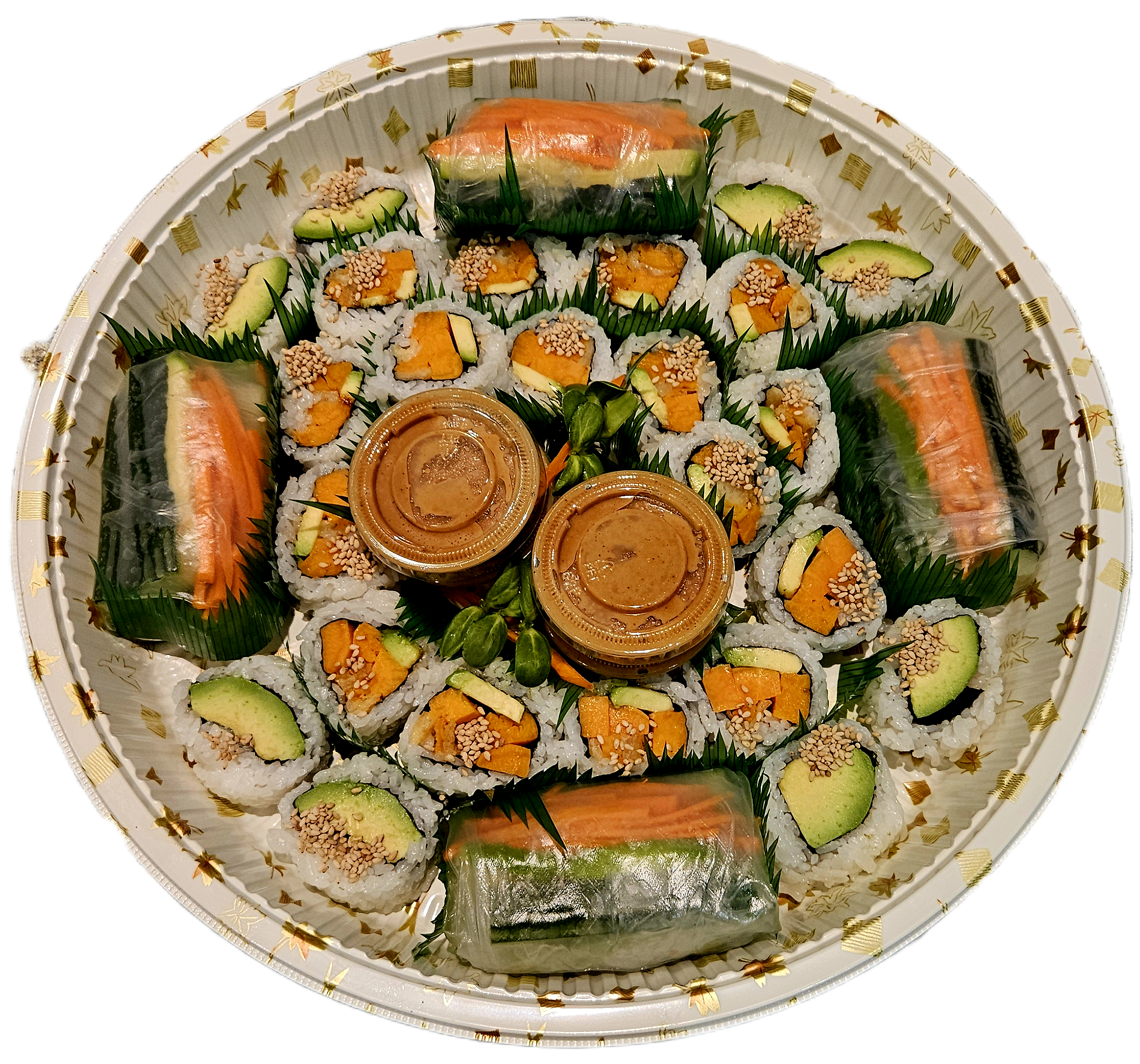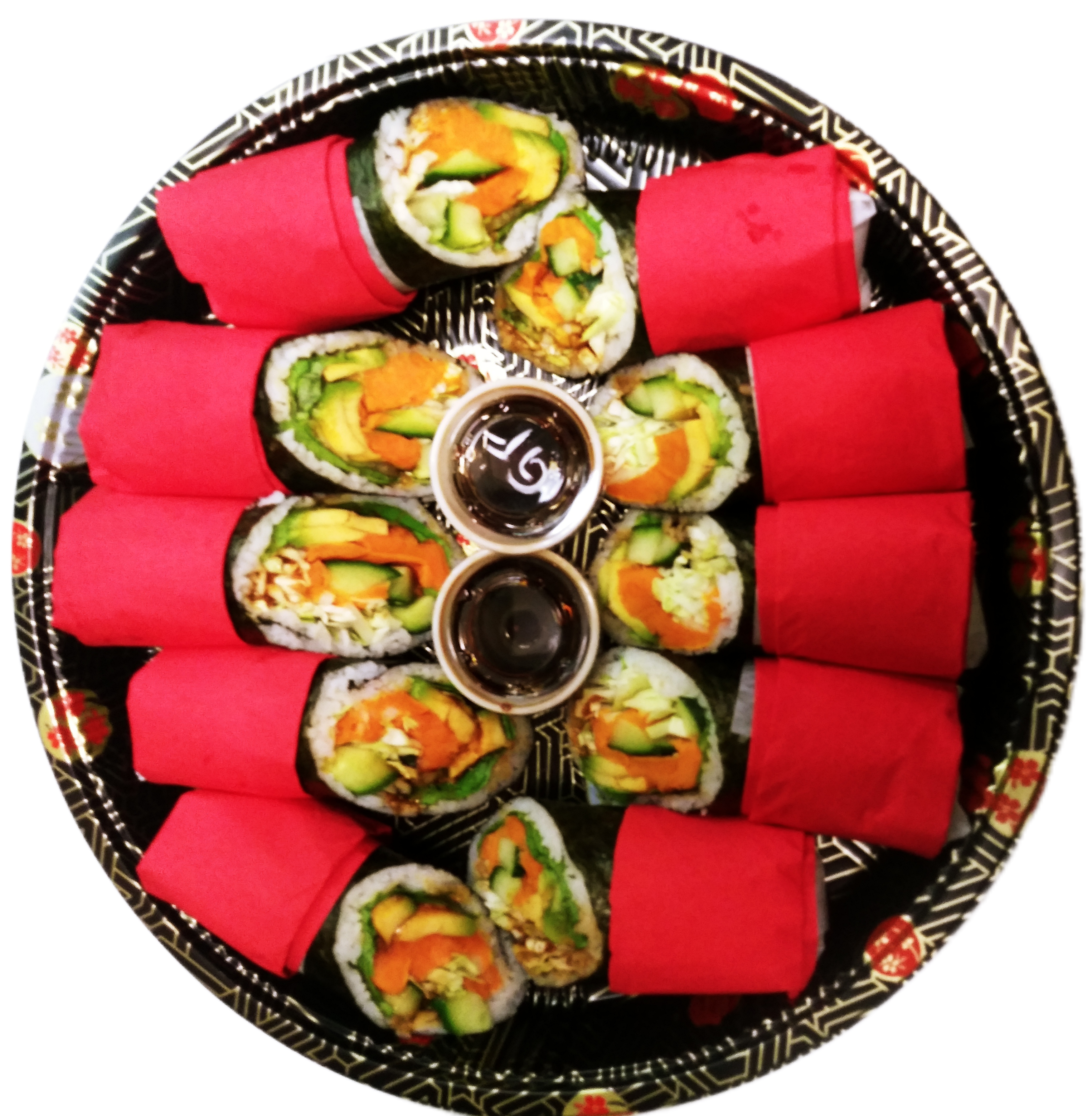 4 Vegetable Wraps, 16 pcs Yam-Cado and 8 pcs Avocado Rolls (click here to see photo)